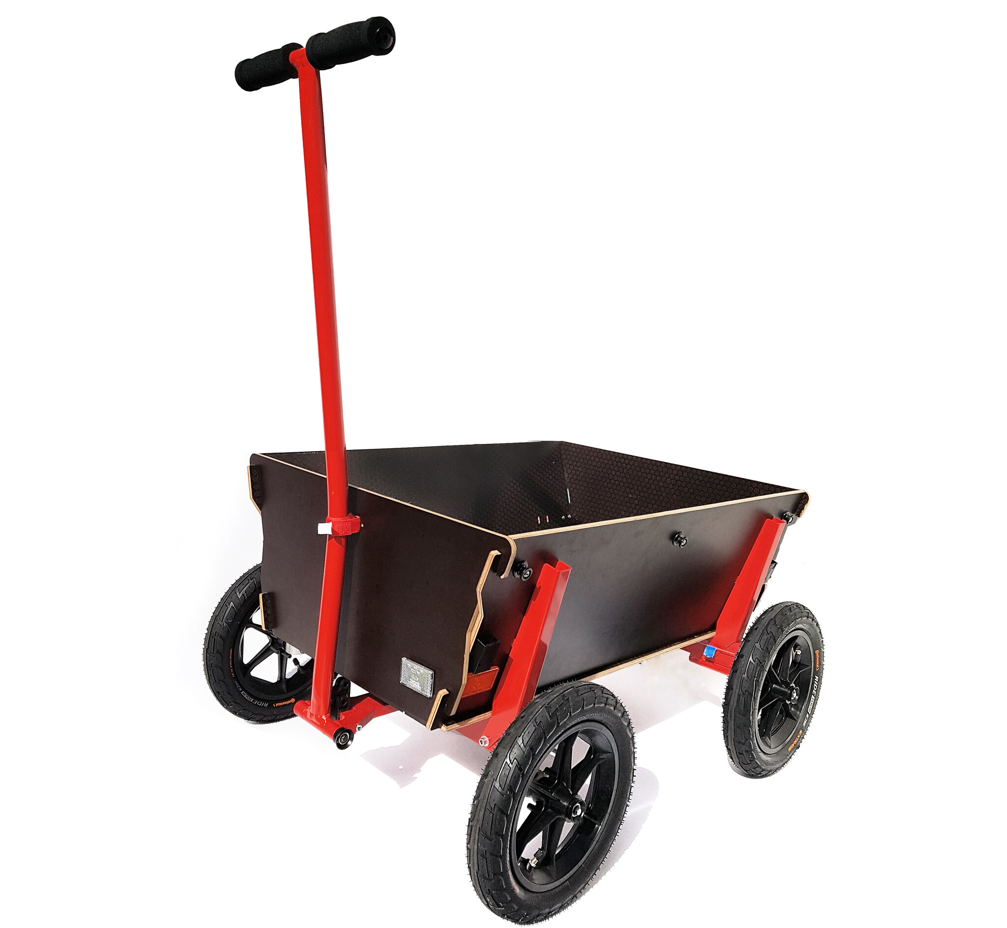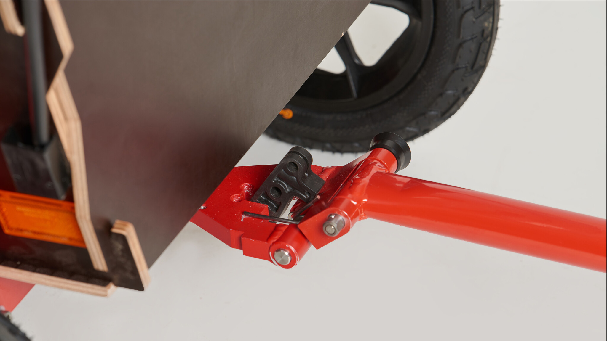 Robuuste gezinshulp voor huishoudelijk en vrijetijdsgebruik in modern design van zwart multiplex gecombineerd met rood aluminium